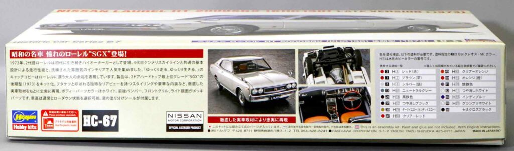 2025年9月、唐突にハセガワから1973年型ローレルSGX(後期型)の発売が発表。